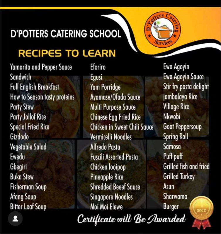 At D’Potters Catering School, we equip aspiring chefs and entrepreneurs with both practical cooking skills and business knowledge. Whether you want to become a professional caterer or grow your food business, our training is designed for you.